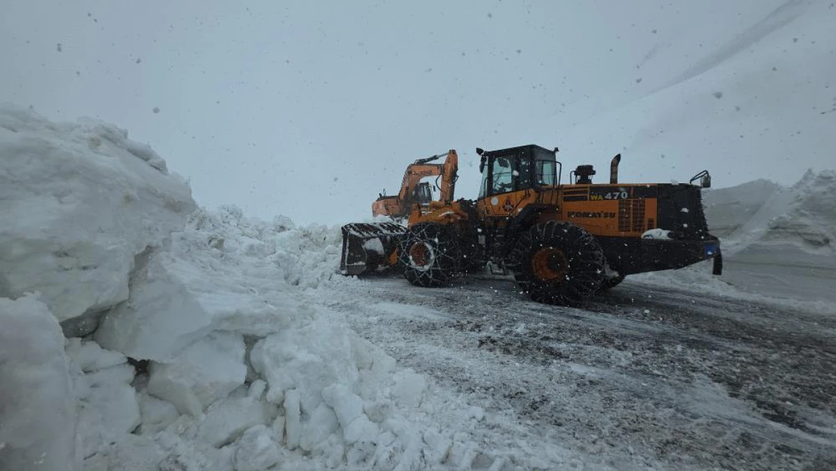 Van'ın Bahçesaray ilçesine ulaşımı sağlayan ve yaklaşık 3 buçuk aydır kapalı olan 3 bin rakımlı Karabet Geçidi'nde çalışmalar yoğun kar yağışı altında devam ediyor.