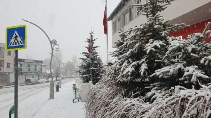Kar yağışı nedeniyle ilçe beyaza bürünürken sürücüler ilerlemekte zorlandı, ekipler ulaşımda aksama yaşanmaması için önlem aldı.