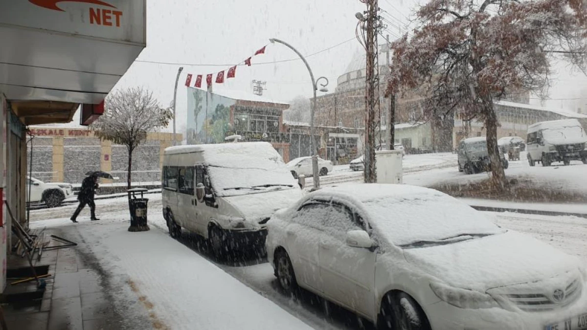 Van'ın Başkale ilçesinde sabah saatlerinde başlayan sağanak, yerini kara bıraktı.
