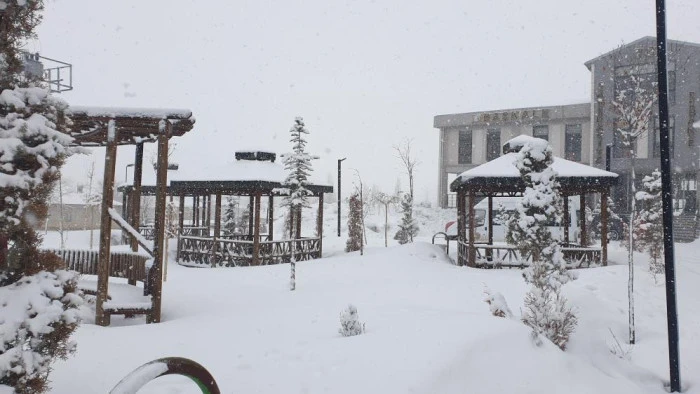 Van'ın Başkale ilçesinde etkili olan kar yağışı nedeniyle her yer beyaza büründü.