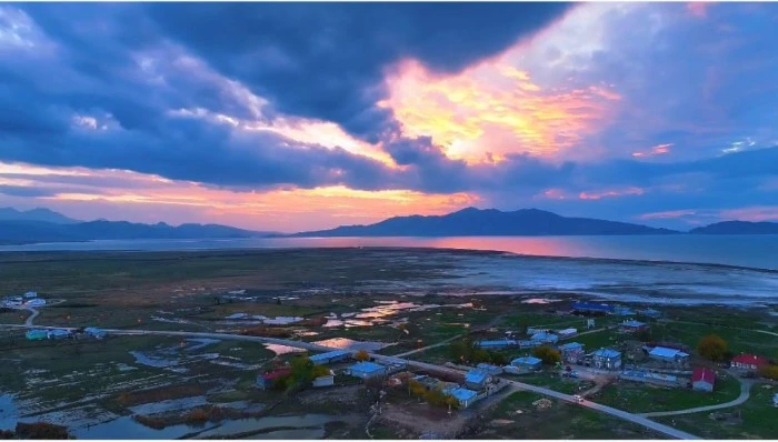 Van Gölü'nün hemen doğusunda yer alan ve özellikle flamingolar başta olmak üzere birçok kuş türüne ev sahipliği yapan Erçek Gölü, gün batımı manzarasıyla fotoğraf ve doğa meraklılarının uğrak yeri olmaya devam ediyor.