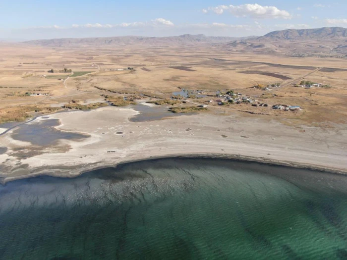 Van'ın önemli sulak alanlarından biri olan Erçek Gölü, yaşanan kuraklık ve buharlaşmanın etkisiyle gözle görülür biçimde çekilmeye devam ediyor