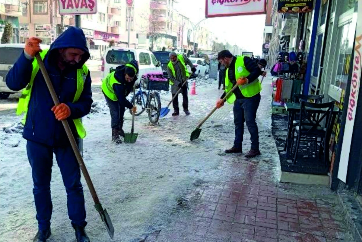 ERCİŞ BELEDİYESİ KALDIRIMLARDA KAR TEMİZLİĞİ ÇALIŞMALARINI SÜRDÜRÜYOR