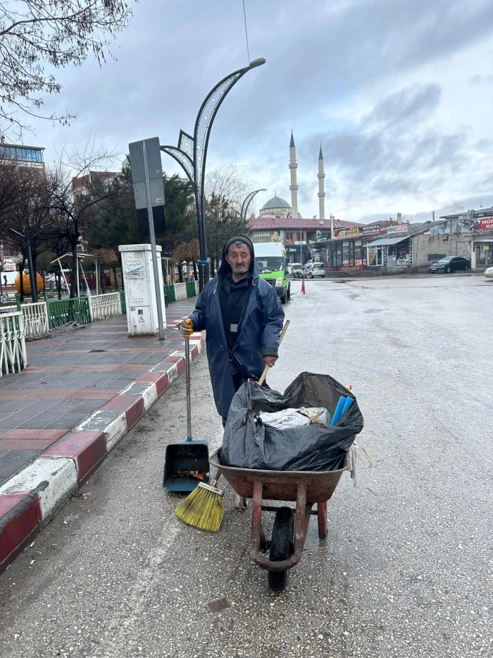 Erciş’te belediye bünyesinde görev yapan temizlik personeli Kayyum Kayakeser, özverili çalışmasıyla takdir topluyor