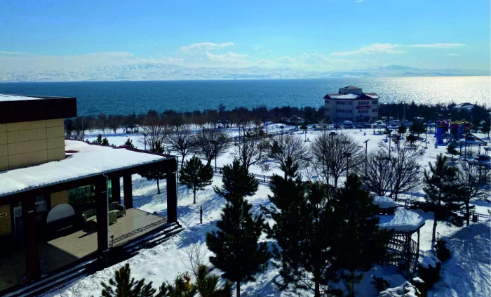 Van Gölü kıyısında yer alan Erciş Öğretmenevi, sunduğu eşsiz manzarayla misafirlerine görsel bir şölen yaşatıyor.