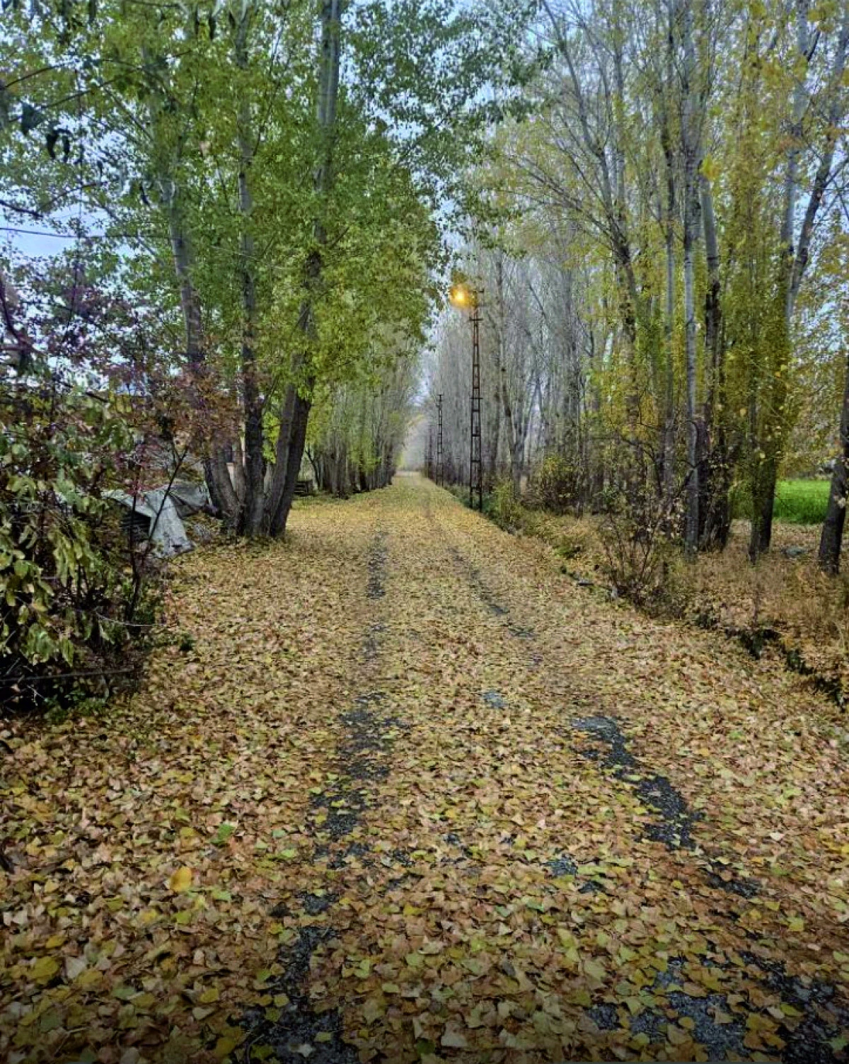 Erciş’te sonbahar, kendine has hüznü ve zarafetiyle yeniden kapıları araladı. İlçenin ağaçlarla çevrili yolları, sararan yaprakların birer birer toprağa düşmesiyle altın sarısı bir örtüye büründü. Yere yayılan gazeller, sanki mevsimin sessizce fısıldadığı bir şiirin dizeleri gibi yol boyunca uzanıyor.