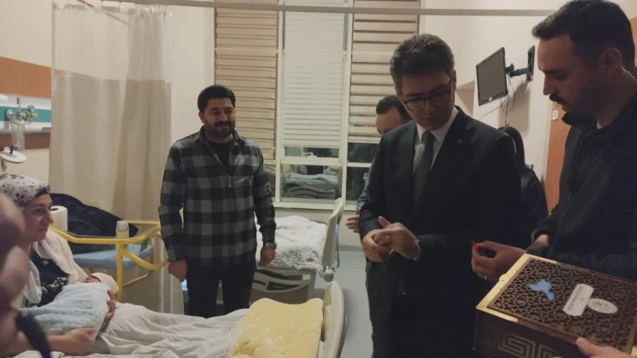Hastane personelinin yeni yılını kutlayan Kaymakam Murat Karaloğlu da, gün içinde doğan bebeklerin ailelerine hediye takdim ederken 2026’ın ilk bebeği Mert Buğra’ya ise çeyrek taktı. Karaloğlu yeni doğan bebekleri kucağına alıp severek, "Hayırlı olsun Rabbim devletine milletine hayırlı evlatlar eylesin" dedi.