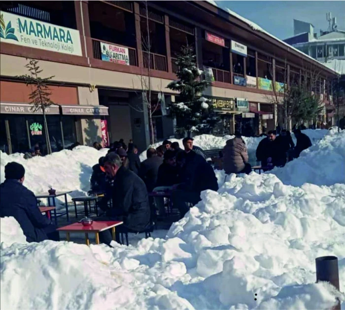 Erciş’te etkili olan yoğun kar yağışının ardından ilginç görüntüler ortaya çıktı. Kar temizliği sırasında oluşan metrelerce yüksekliğindeki kar duvarlarının arasında oturan vatandaşlar, soğuk havaya aldırış etmeden çay keyfi yaptı. Ortaya çıkan görüntüler sosyal medyada ilgi görürken, Ercişlilerin kış şartlarına alışkın yaşamı bir kez daha gözler önüne serildi. (Haber:Sadiye YİGİT)