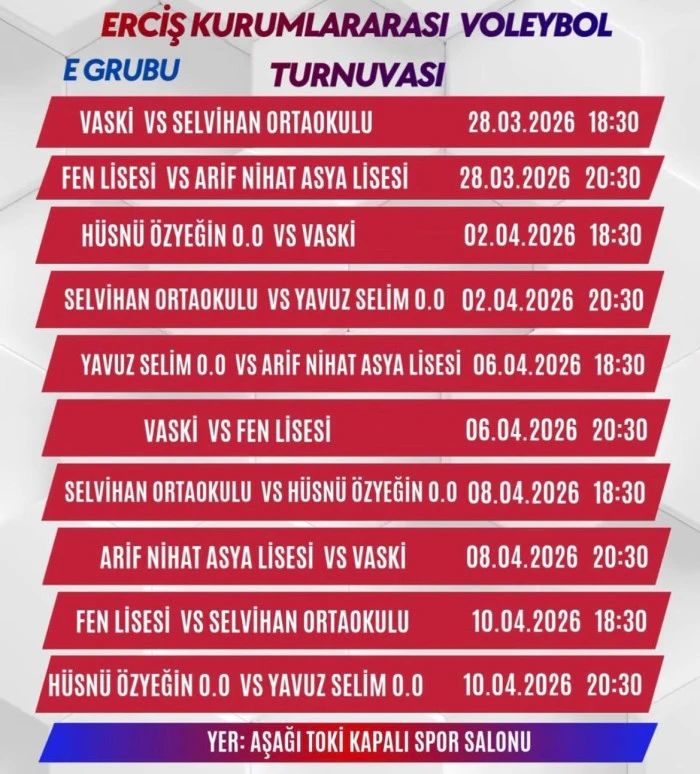 Büyük bir heyecan yaratan turnuvada, kamu kurumlarında görev yapan sporcular dostluk ve rekabet içinde mücadele edecek. Turnuvanın fikstürü, maç tarihleri ve saatleri spor severler için duyurulurken, tüm vatandaşlar karşılaşmaları izlemek üzere davet edildi.
