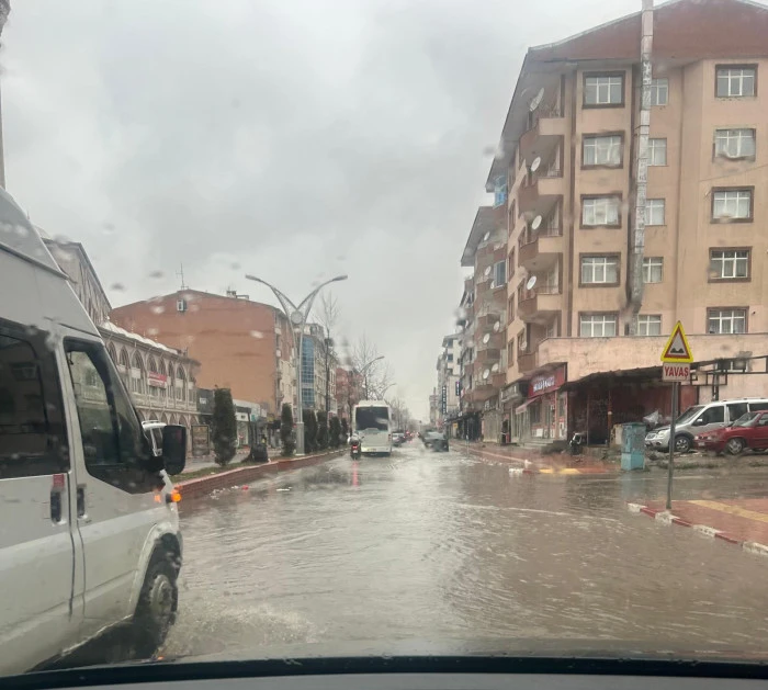 Erciş’te sabah saatlerinde etkili olan yağmur, ilçenin en işlek noktalarından biri olan Vanyolu Caddesi’nde yine bildik manzaraları ortaya çıkardı