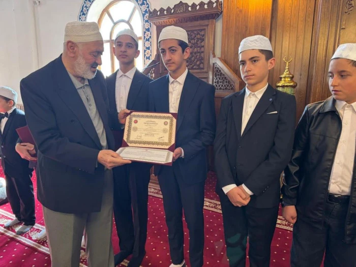 Diyanet İşleri Başkanlığı tarafından düzenlenen hafızlık eğitimini başarıyla tamamlayan 8 öğrenci, törenle hafızlık belgelerini aldı.