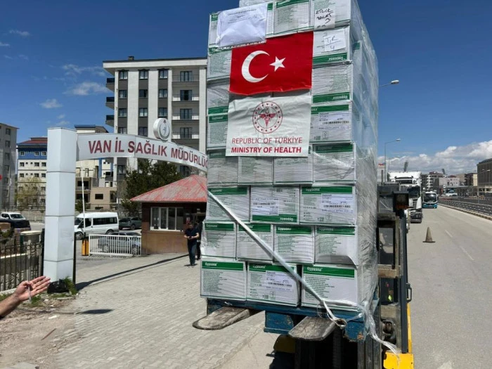 Sağlık Bakanlığı koordinesinde, İran'daki tıbbi ihtiyaçların karşılanması amacıyla başlatılan yardım sevkiyatları devam ediyor. Van İl Sağlık Müdürlüğü lojistiğinde hazırlanan ve içerisinde ilaç ile tıbbi sarf malzemelerinin bulunduğu 6 tır yola çıktı.