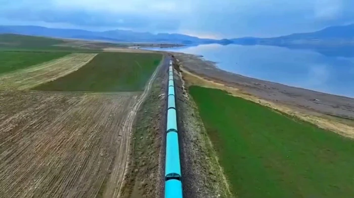 Uluslararası öneme sahip olan ve Asya'ya açılan ana koridorlardan biri konumundaki demiryolu, Erçek Gölü kıyısında ilerlerken, kartpostallık görüntüler oluşturuyor.