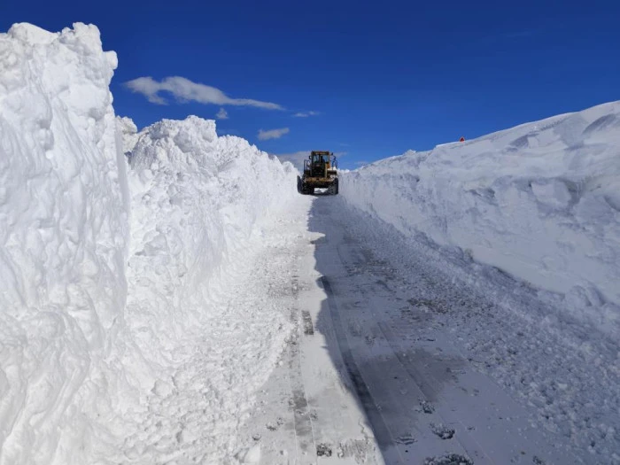 Van'ın Başkale ilçesine bağlı Aydemir grup yolunda nisan ayında yer yer 5 metreyi bulan karda yol açma çalışmaları devam ediyor.