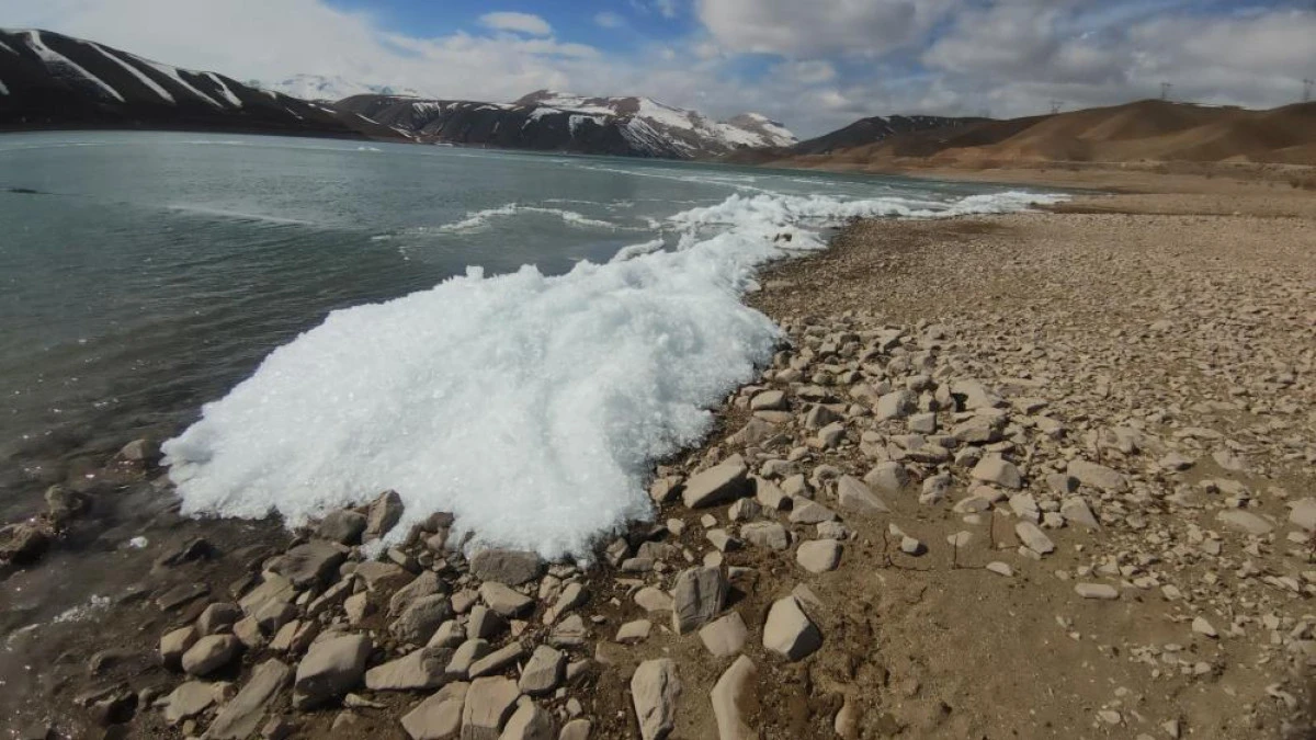 Sibirya soğuklarının hakim olduğu Van'da Zernek Barajı'ndaki dalgalar donarak kristalleşti. Ortaya çıkan manzara görsel şölen sundu.