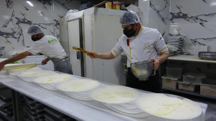 Ramazan Bayramı öncesi pastane ve tatlı imalathanelerinde "bayram mesaisi" telaşı yaşanıyor. Müşterilerin taleplerini karşılamak için hazırlıklarını tamamlayan işletmelerde, ustalar siparişleri yetiştirmek için yoğun tempo ile çalışıyor. Sabah saat 07.00'de başlayan mesai, sipariş durumuna göre akşam geç saatlere kadar devam ediyor.
