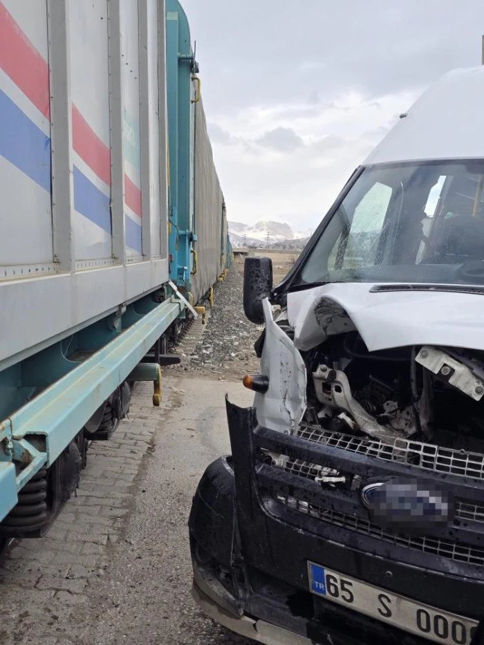 Van’ın Tuşba ilçesinde hemzemin geçitte tren ile okul servisi çarpıştı. Faciadan dönülen kaza maddi hasarla atlatıldı.