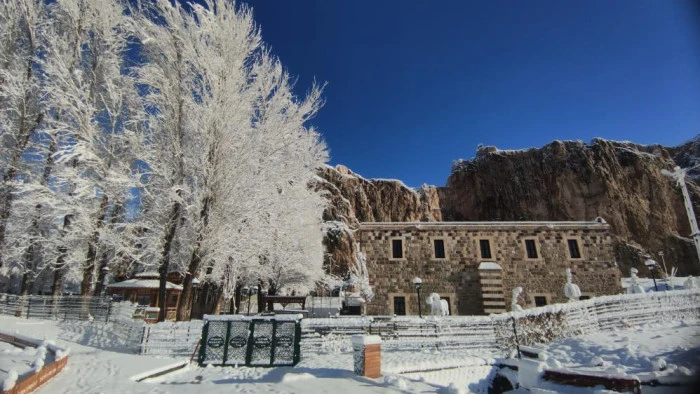 Doğu Anadolu'nun incisi Van'da, gece saatlerinde başlayan ve etkisini giderek artıran kar yağışı, şehri adeta bir masal diyarına çevirdi. Sabahın ilk ışıklarıyla ortaya çıkan görüntüler, vatandaşlara seyir zevki yüksek kareler sundu. Gece yarısı başlayan yağışla birlikte ağaçlar kar çiçekleri açarken, tarihi ve turistik mekanlar beyaz örtüyle kaplandı. Özellikle Van Kalesi güneyindeki tarihi Husrev paşa Külliyesi, Horhor Camii ve ağaç dallarında biriken karlar, sessizliğin hakim olduğu alanda estetik bir dokunuş kattı.