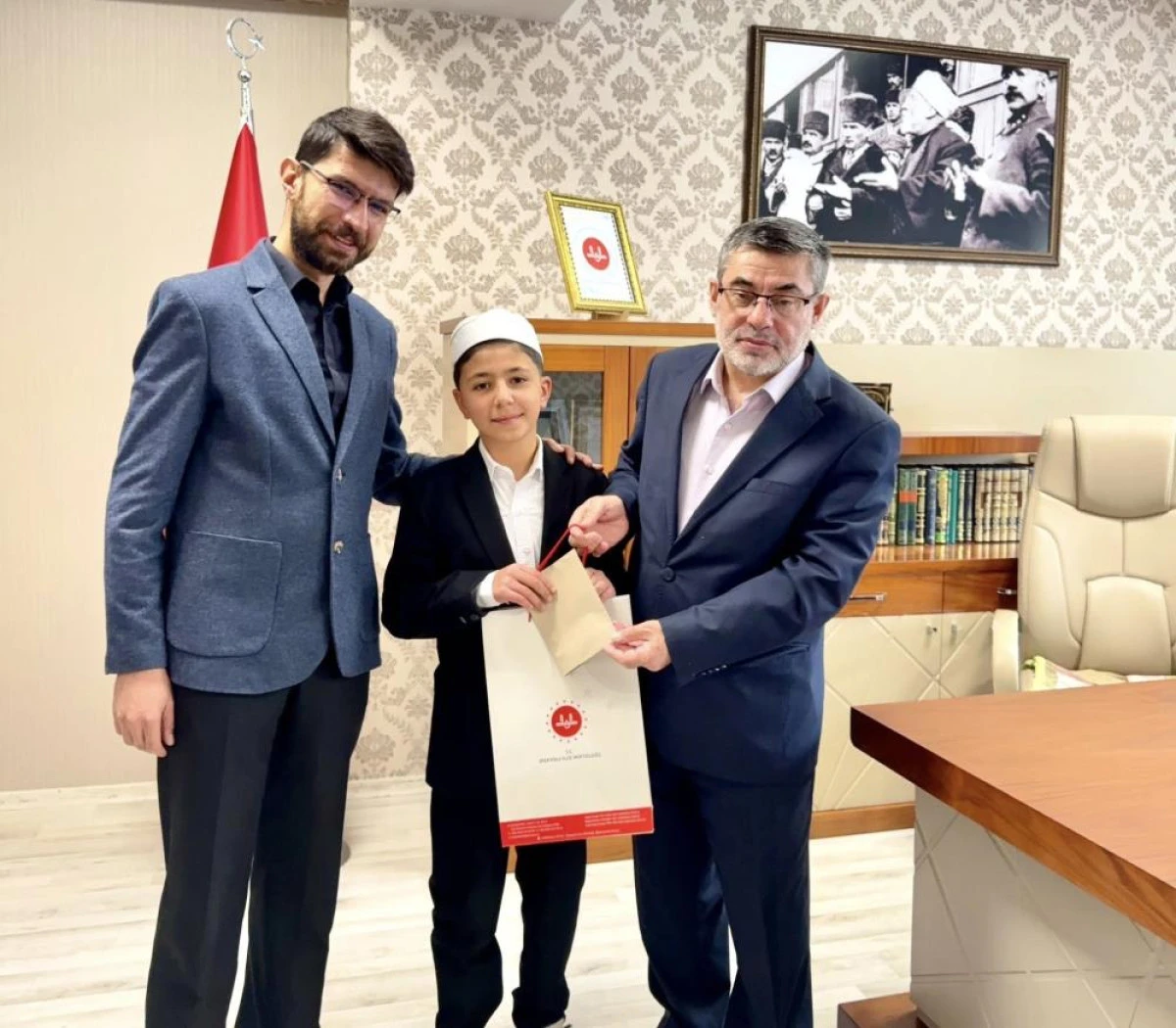 İpekyolu İlçe Müftüsü Fatih Tavlaşoğlu, Kur'an kursu yöneticisi, hocası ile hafız Yurdakul'u makamında ağırladı. Bu önemli başarı, hem ailesini hem de eğitim aldığı kurum yetkililerini gururlandırdığını ifade eden müftü Tavlaşoğlu, "Kur'an-ı Kerim'i hıfz etmek büyük bir emek ve sabır gerektirir. Bu başarının sadece bireysel değil, aynı zamanda eğitimin kalitesini de gösteren önemli bir gelişme olduğunu vurguladı. Davut kardeşimizin bu azmi herkese örnek olmalı. Öğrencimizi, ailesini ve emeği geçen hocalarımızı gönülden tebrik ediyorum" dedi.