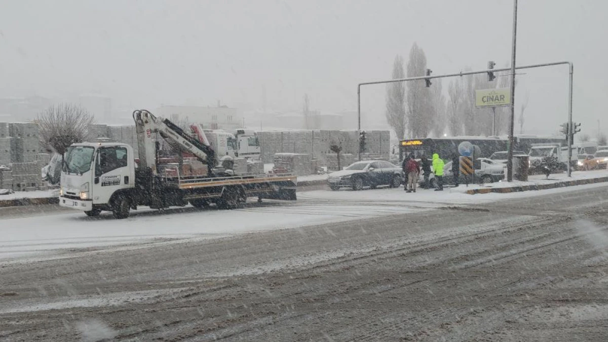 Van’da akşam saatlerinde etkili olan kar yağışı kent genelinde trafiği olumsuz yönde etkiledi, maddi hasarlı kazalar meydana geldi