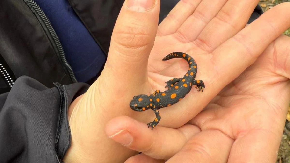 Van’ın Bahçesaray ilçesinde doğa yürüyüşüne çıkan bir grup doğasever, nadir görülen benekli semender (Salamandra infraimmaculata) ile karşılaştı