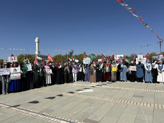 Basın açıklamasını okuyan Hasan Akkaya isimli öğrenci, 7 Ekim 2023'te başlayan Aksa Tufanı Direnişi'nin ikinci yıl dönümünde, insanlığın vicdanına seslenmek, zulme karşı bir kez daha haykırmak için toplandıklarını belirtti. Akkaya, "İki yıldır Gazze'de, dünyanın gözleri önünde tarifsiz bir zulüm yaşanıyor. İsrail'in saldırılarında 70 bine yakın Filistinli şehit oldu; on binlercesi yaralandı; şehirler yerle bir edildi. Bu rakamlar sadece sayılardan ibaret değildir. Her biri, bir hayatın, bir ailenin, bir umudun yok edilişidir. Elleri, bacakları kopan çocuklar; vahşice öldürülen insanlar; gözleri önünde evlatlarını yitiren anneler; yaşlı, savunmasız babalar; savaşın ortasında açlığa ve ölüme terk edilen Gazze halkı ve hatta hayvanlar bile ne yazık ki yeteri kadar gündem olmadı. Bu vahşete karşı sessiz kalmak insanlığa ihanettir. Ancak bütün bu acılara rağmen, Gazze teslim olmadı. Tarihin gördüğü en ağır kuşatmalar altında bile direnişin onurunu korudu. İsrail'in her gün işlediği savaş suçları karşısında Batılı bazı devletlerin sessizliği, hatta bu zulme verdikleri dolaylı destek, insanlığın kara lekesidir. Bugün ‘insan hakları' söylemleriyle dünyaya ders vermeye çalışan devletler, Gazze'deki çocukların feryadına sağır kalmıştır" dedi.