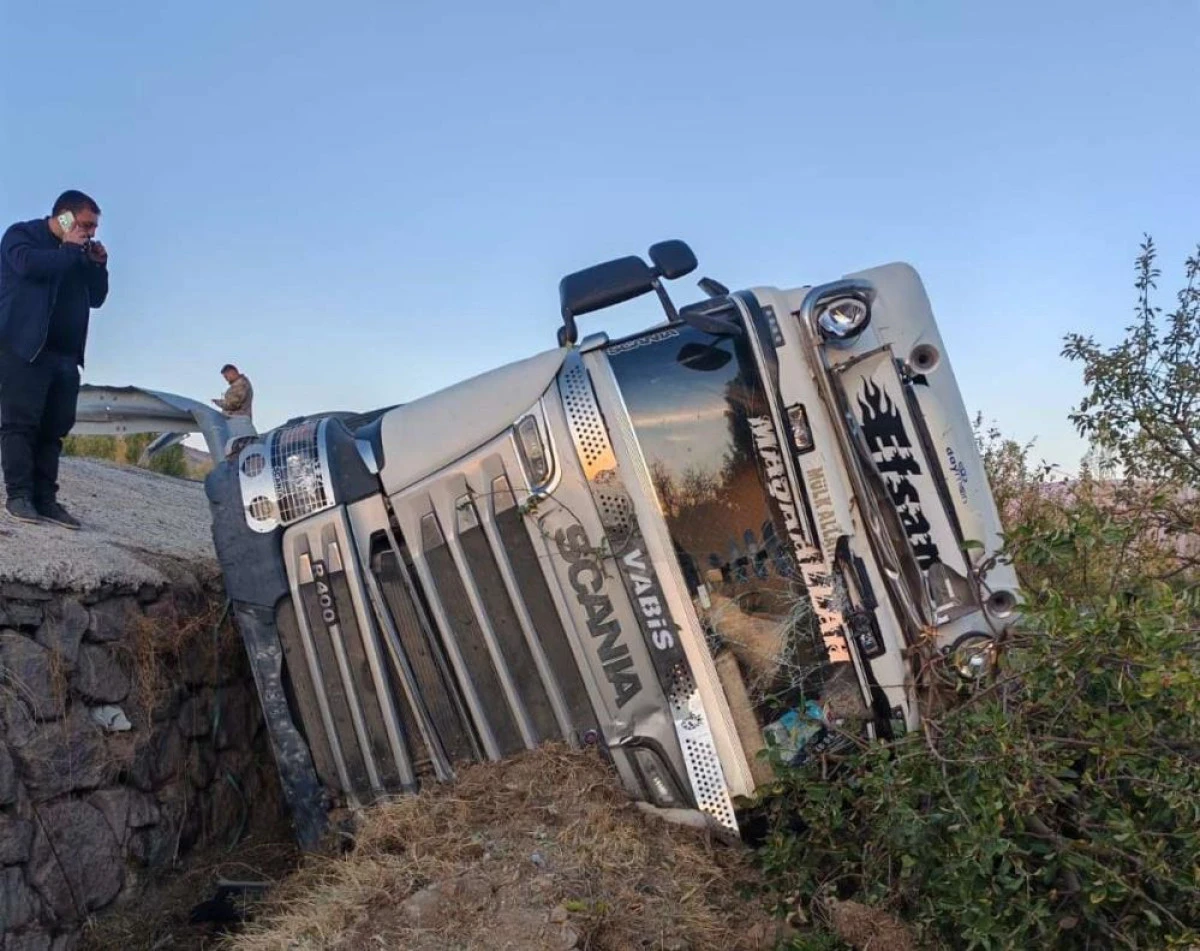 Van’da tır şarampole yuvarlandı: 1 yaralı