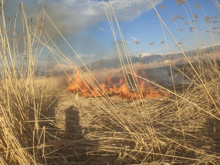 Van'ın Muradiye ilçesindeki birçok kuş türünün bulunduğu sazlık alandaki yangın itfaiye ekipleri tarafından söndürüldü.