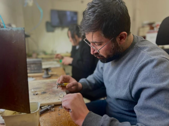 Van'da tescilli savat sanatı, atölyelerde genç ustalara öğretilerek geleceğe taşınıyor. Van'da yaklaşık 2 bin 800 yıllık geçmişi olan ve 1915 öncesinde 120'den fazla atölyede icra edilen savatlı gümüş işlemeciliği, yok olma tehlikesini geride bırakarak yeniden ilgi odağı oldu. 90'lı yıllarda yeniden canlandırılan ve 2017 yılında tescil alan sanatın günümüzdeki temsilcilerinden 44 yıllık savat ustası Sadık Binici, üretim kapasitesini ve eğitim faaliyetlerini genişletti. Daha önce ürünlerini sadece toptan satışa sunan Binici, Van Bedesten Çarşısı'nda açtığı yeni iş yerinde hem üretim yapıyor hem de sanatı doğrudan vatandaşların beğenisine sunuyor. İHA muhabirine konuşan savat ustası Sadık Binici, kadim sanatı gelecek kuşaklara aktarmak için eğitim odaklı bir çalışma yürüttüklerini belirtti. Binici, "Savat, Urartulardan günümüze gelen kadim bir Van sanatıdır. Urartu Devleti'nden sonra Roma döneminde de bu bölgede icra edilmiştir. Selçuklular bu sanata büyük önem vermiş, Osmanlı döneminde ise sanat zirveyi yaşamıştır. Osmanlı'nın son dönemlerinde, 1915 öncesinde burada 125 civarında kuyumcu atölyesi bulunmaktaydı. O zamanki nüfusun yüzde 7'sine tekabül eden bir sanatkâr kitlesi bu işle uğraşıyordu. Ben de bu sanatı şimdiki gençlere öğretmeye çalışıyorum. Şu anda yanımda 5-6 kişi çalışıyor. Gençler hakikaten hem hevesliler hem de bu işi yapmak için ellerinden geldiğince uğraşıyorlar. İnşallah bu işi öğrenip benden sonra da devam ettirirler ve daha çok insana öğretirler, amacımız budur" dedi. Osmanlı'nın son dönemlerinde bu bölgede yapılan savatlı takıları ve tabakaların, günümüz şartlarında teknolojinin de ilerlemesiyle daha da geliştirdiklerini dile getiren Binici, "Artık tespihler ve çok değişik takılar da üretiyoruz. Urartu figürlerini kullanıp savatla birleştiren, bu alandaki tek atölyeyiz. Selçuklu figürlerini işliyoruz; bölgeye ait olan çiçek modellerini, ters lale figürlerini kullanıyoruz. Bu alanı epey bir geliştirdik. Hem Van'ı daha iyi tanıtmak için elimizden geleni yapıyor hem de bu işi daha da ilerletmek istiyoruz" diye konuştu. "Türkevi'nde tanıtılması gurur kaynağı oldu" Savat sanatının uluslararası düzeyde gördüğü ilgiden bahseden Binici, sözlerini şöyle sürdürdü: "Amerika New York'taki Türkevi'nde Cumhurbaşkanımızın eşi Emine Erdoğan'ın ürünlerimizi oraya götürüp tanıtması, Van'ımız için büyük bir gurur kaynağı oldu. Biz de bu işi artık geriye değil, daima ileriye götürmek için elimizden geleni yapıyoruz. Daha önceleri ürünlerimizi toptan yapıp satıyorduk; ancak şimdi kendi iş yerimizi açtığımız için ürünlerimizi doğrudan insanların takdirine ve beğenisine sunuyoruz. İsteyenler gelip görebilirler; yeni açılan Van Bedesten Çarşısı'nda iş yerimiz bulunmaktadır."